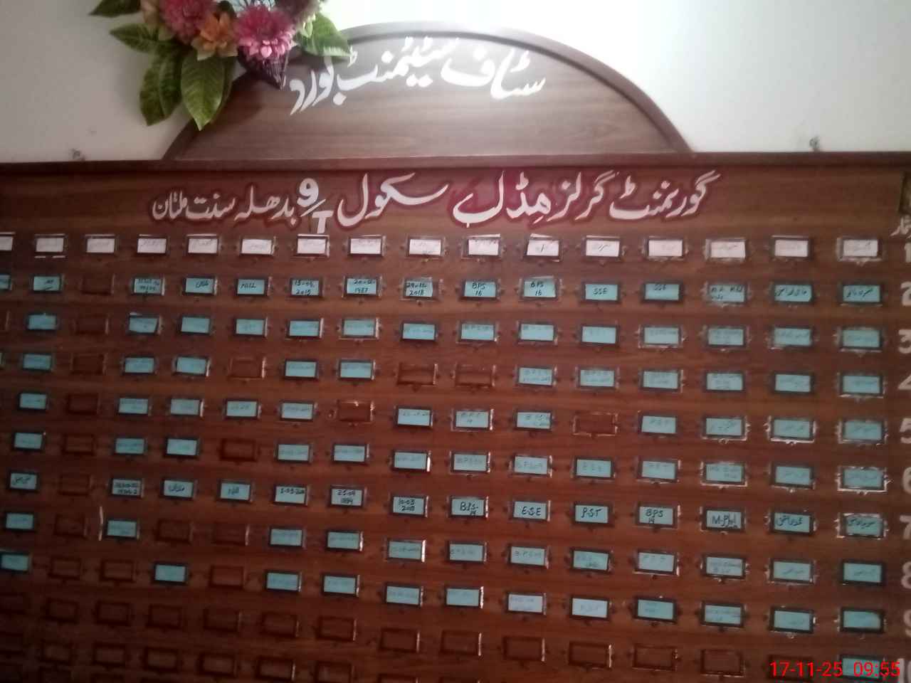 | District: MULTAN | Tehsil: MULTAN SADAR | Markaz: BUDHLA SANT - FEMALE | Level: Middle | |