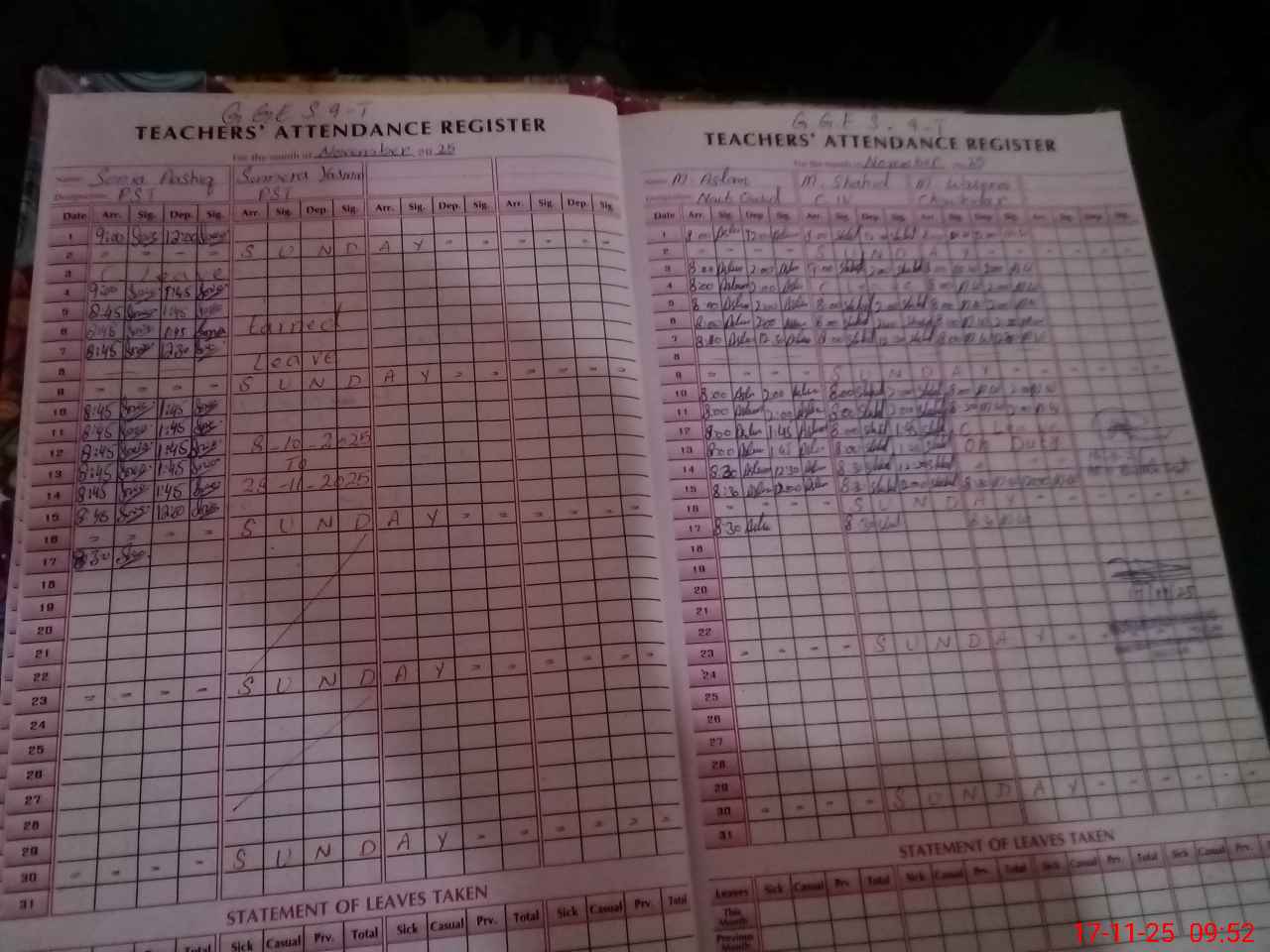 | 36**** | Za**** Sh**** | ESE Science | Regular | 0 | 0 | 0 | 0 | 0 | 0 | 0 | 0 | 0 | Absent (Un-Authorized) |