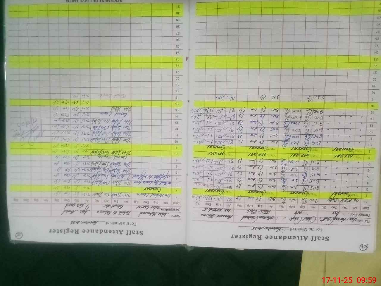 | 37**** | ZO**** URRE**** | CHOWKIDAR | Contract | 2 | 0 | 0 | 0 | 0 | 0 | 0 | 0 | 2 | Casual |