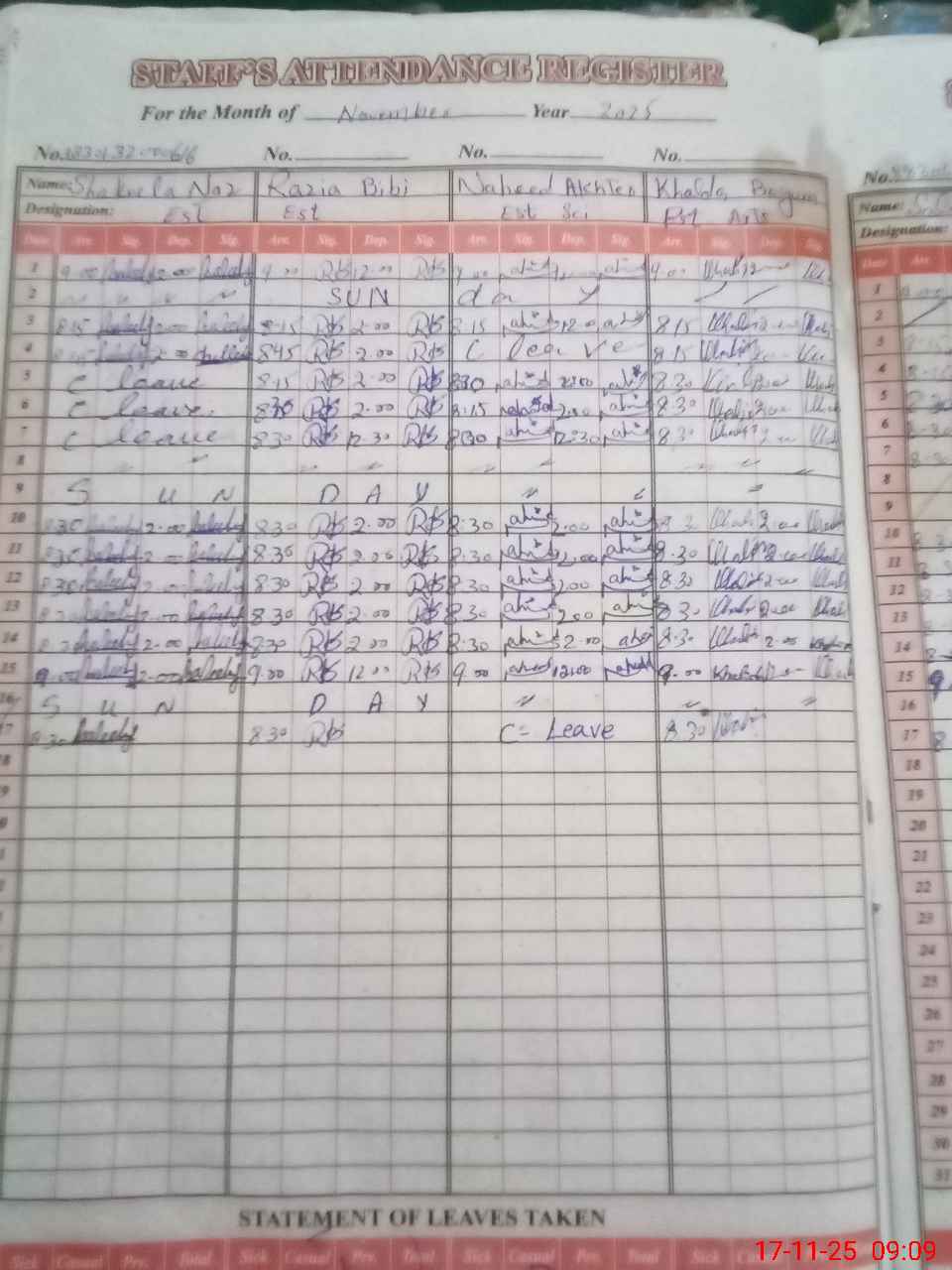 | 00**** | Aw**** Kh**** | JUNIOR CLERK | Regular | 0 | 0 | 0 | 0 | 0 | 0 | 0 | 0 | 0 | Absent (Un-Authorized) |