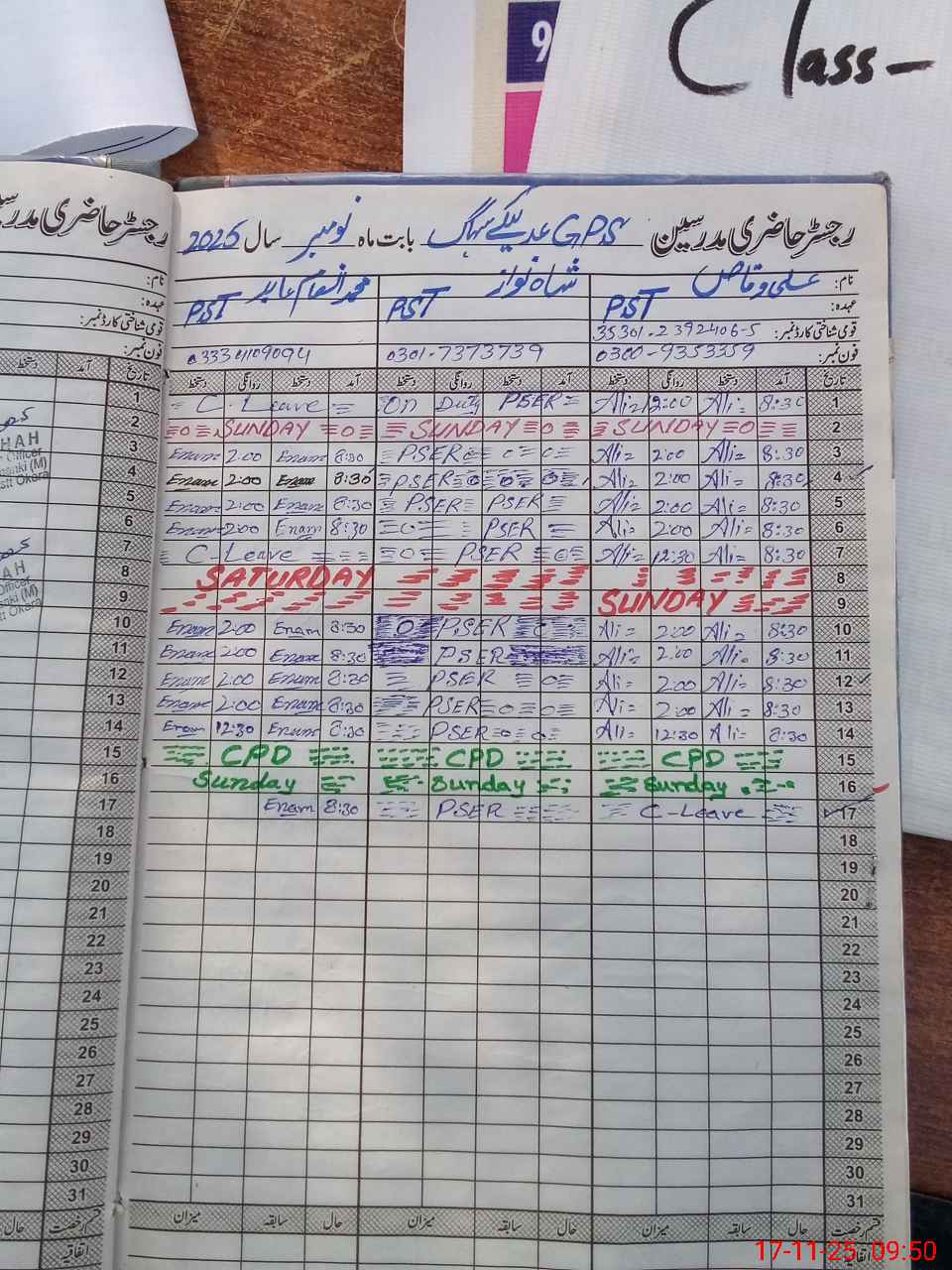 | CNIC | Full Name | Designation | R/C | Absence During Last Calender Month |