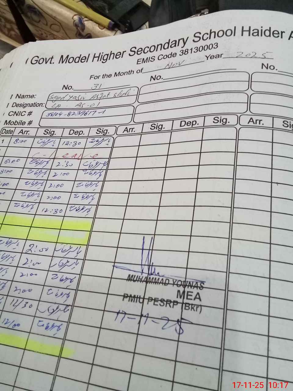 | Remarks (Use Separate Page if Required): Munir ahmed DEO se 16 9 2025 | |||||