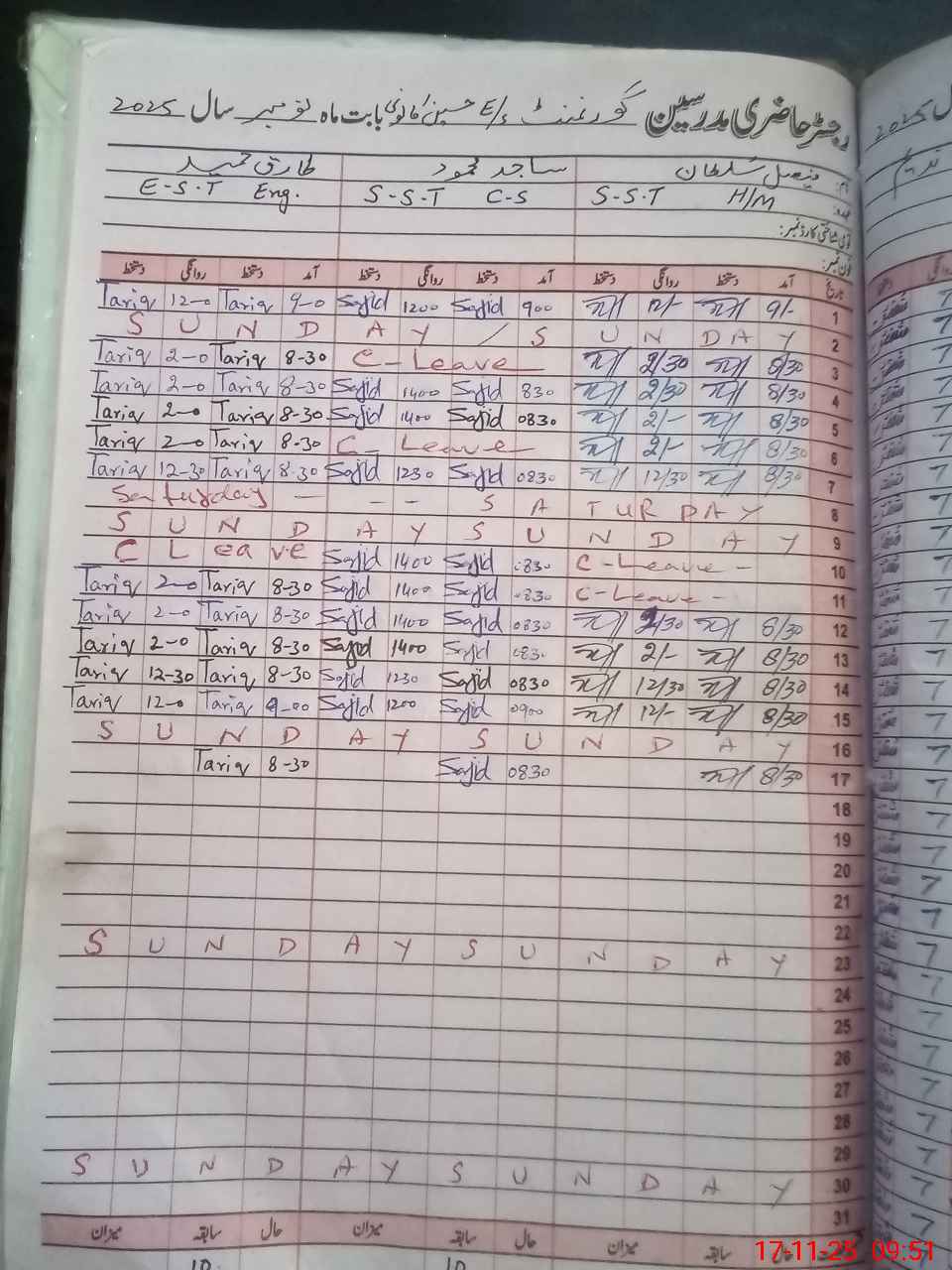 | CNIC | Full Name | Designation | R/C | Absence During Last Calender Month |