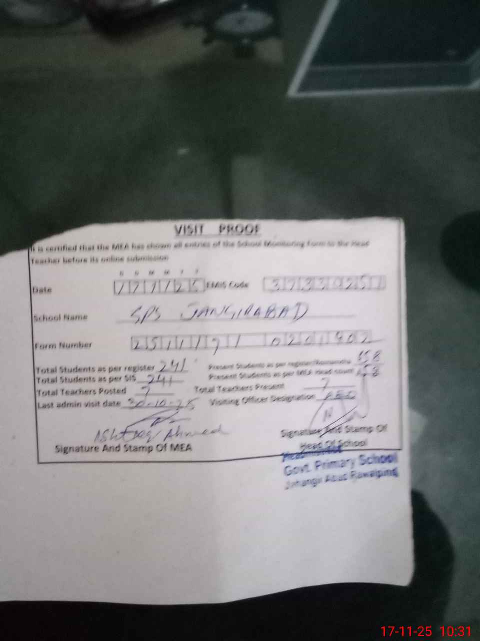 | EMIS Code: 37330251 | Name of School: GPS JHANGIR ABAD SAID GUL TOWN RWP | |||