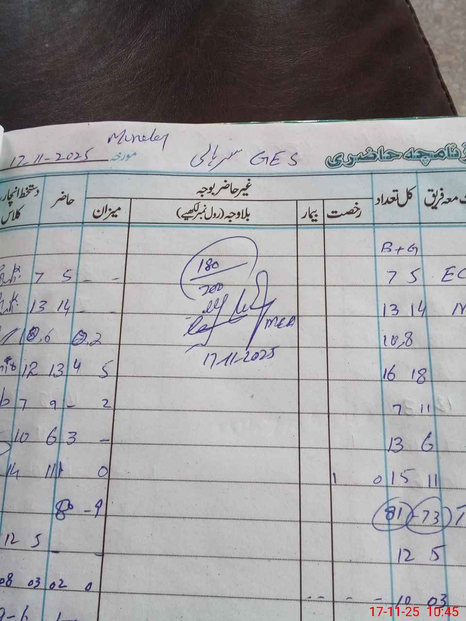 | Leave | Duty | Absent | Maternity | Medical | Ex- Pak |