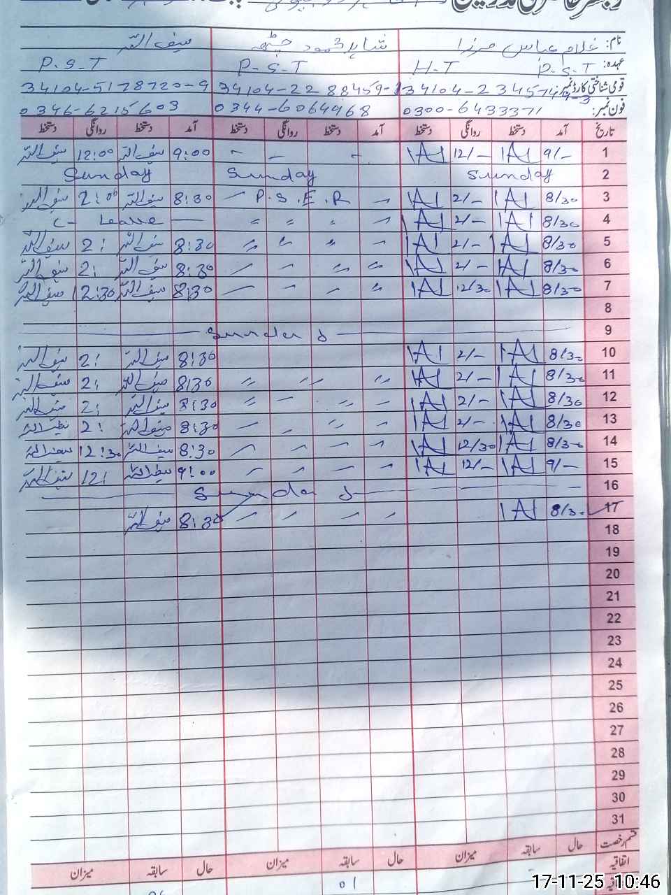 | Name: GH**** AB**** MI**** Designation: (School Headmaster's/Headmistress's) PST/PTC/JV Phone/Cell Number: 03**** |