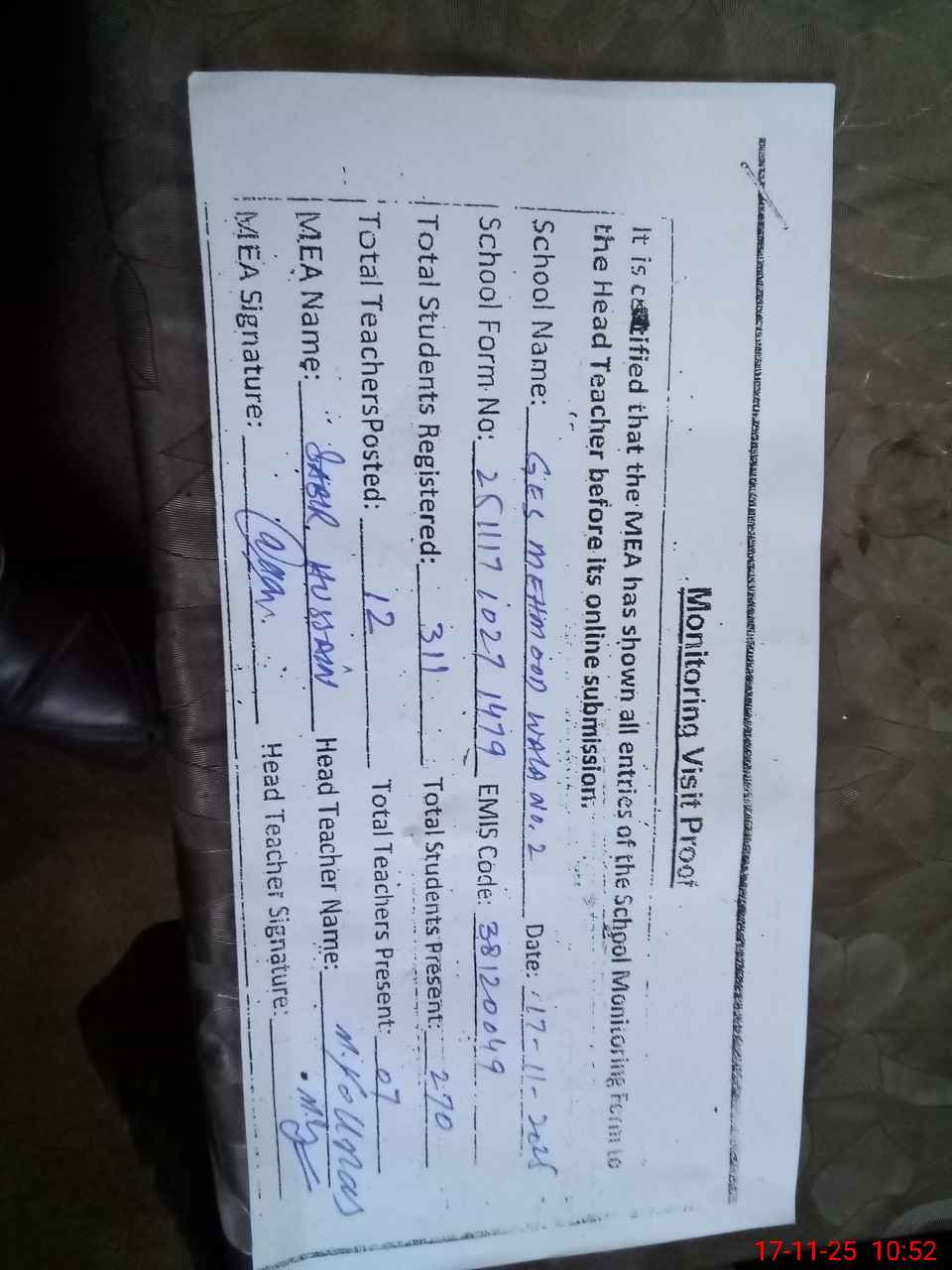 | EMIS Code: 38120049 | Name of School: GES MEHMOOD WALA NO 2 | |||