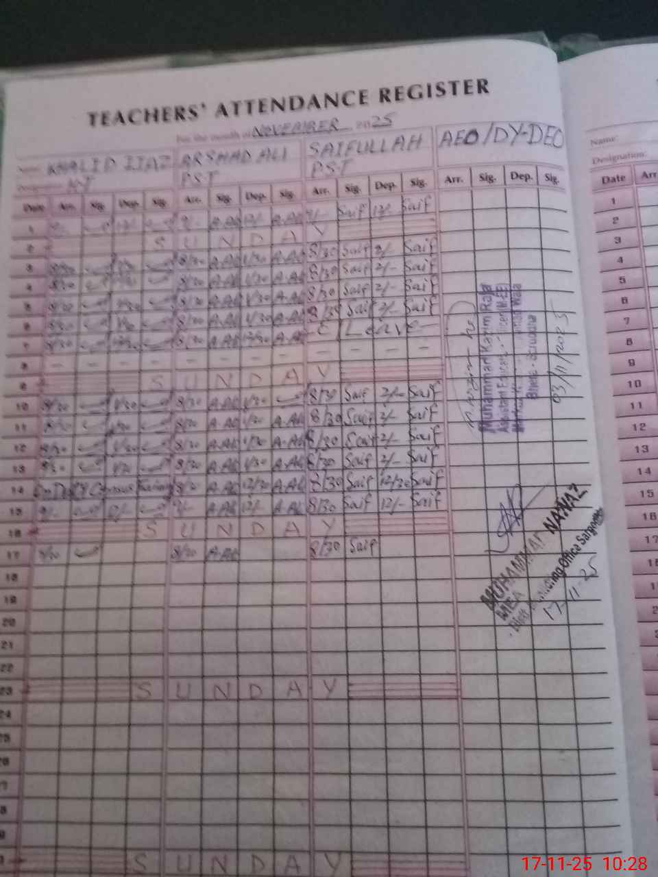 | Name: Kh**** Ij**** Designation: (School Headmaster's/Headmistress's) PST Phone/Cell Number: 03**** |
