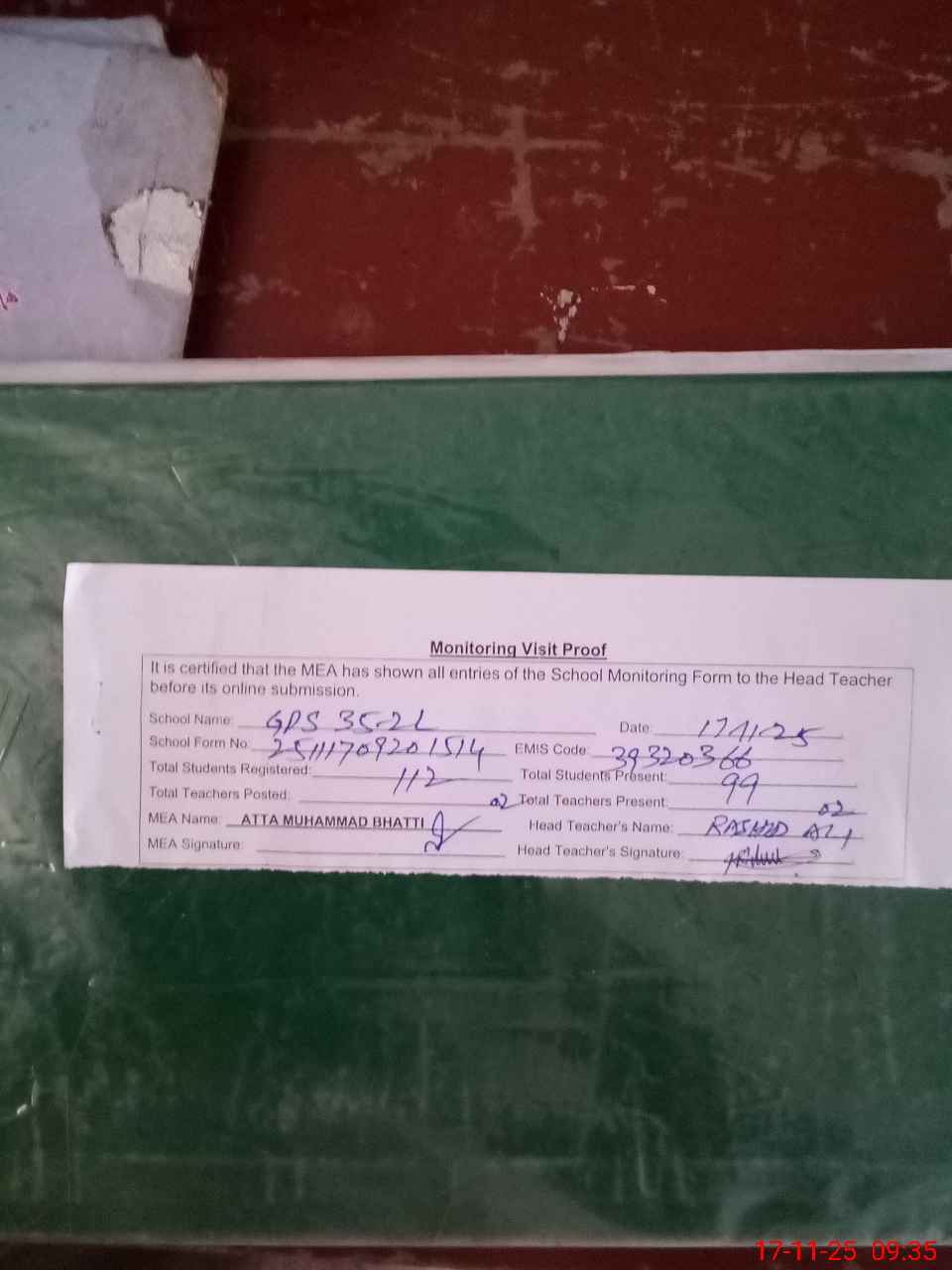 | EMIS Code: 39320366 | Name of School: GPS CHAK 35/2-L | |||