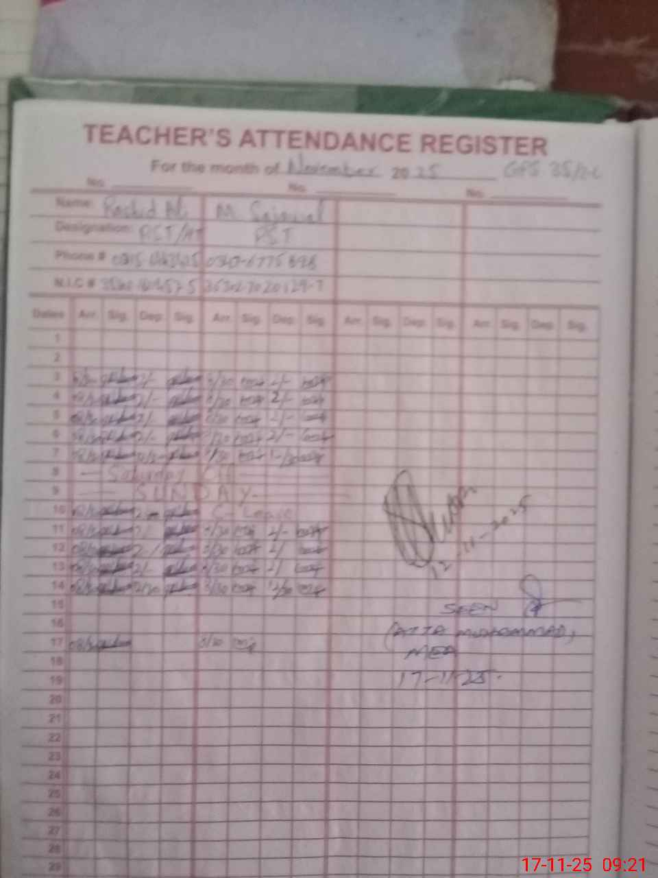 | Name: Ra**** Al**** Designation: (School Headmaster's/Headmistress's) PST Phone/Cell Number: 03**** |