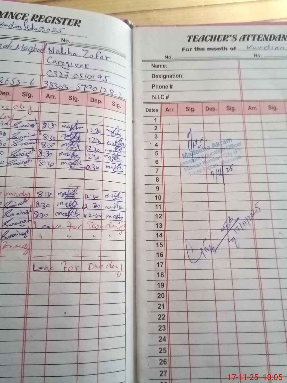 | Name: Za**** Za**** Designation: (School Headmaster's/Headmistress's) PST Phone/Cell Number: 03**** |