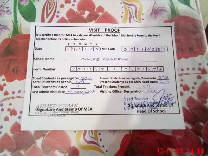 | EMIS Code: 37210287 | Name of School: GMES CHAPPAR | |||