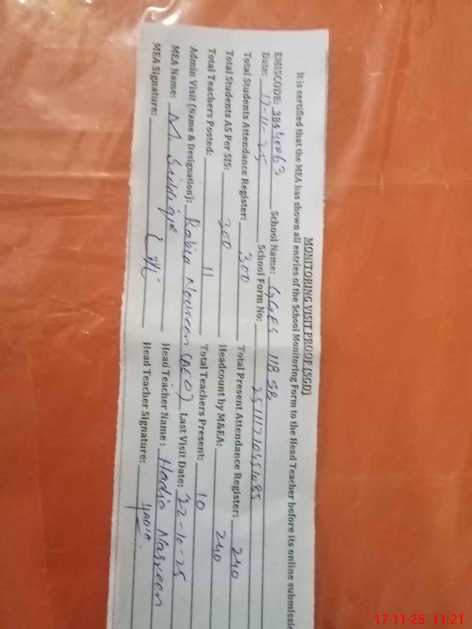 | Certified that this School was Inspected by the Undersigned MEA/DMO Today and the Information Stated Above is as Per Record. | |||||