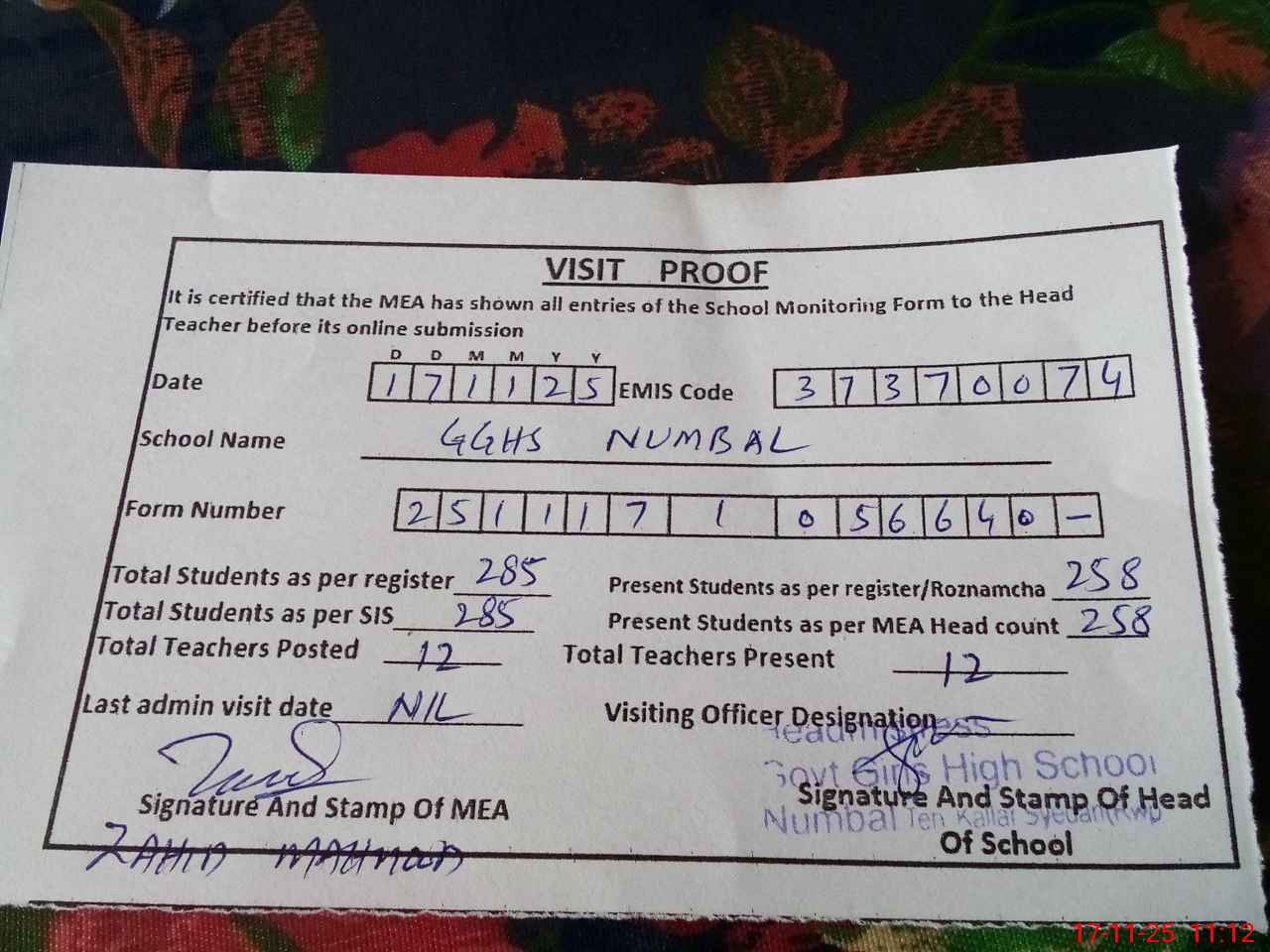 | EMIS Code: 37370074 | Name of School: GGHS NUMBAL | |||