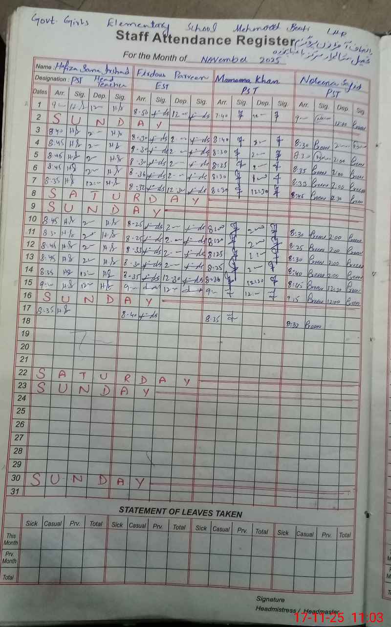 | Name: Ha**** Sa**** Ir**** Designation: (School Headmaster's/Headmistress's) PST Phone/Cell Number: 03**** |