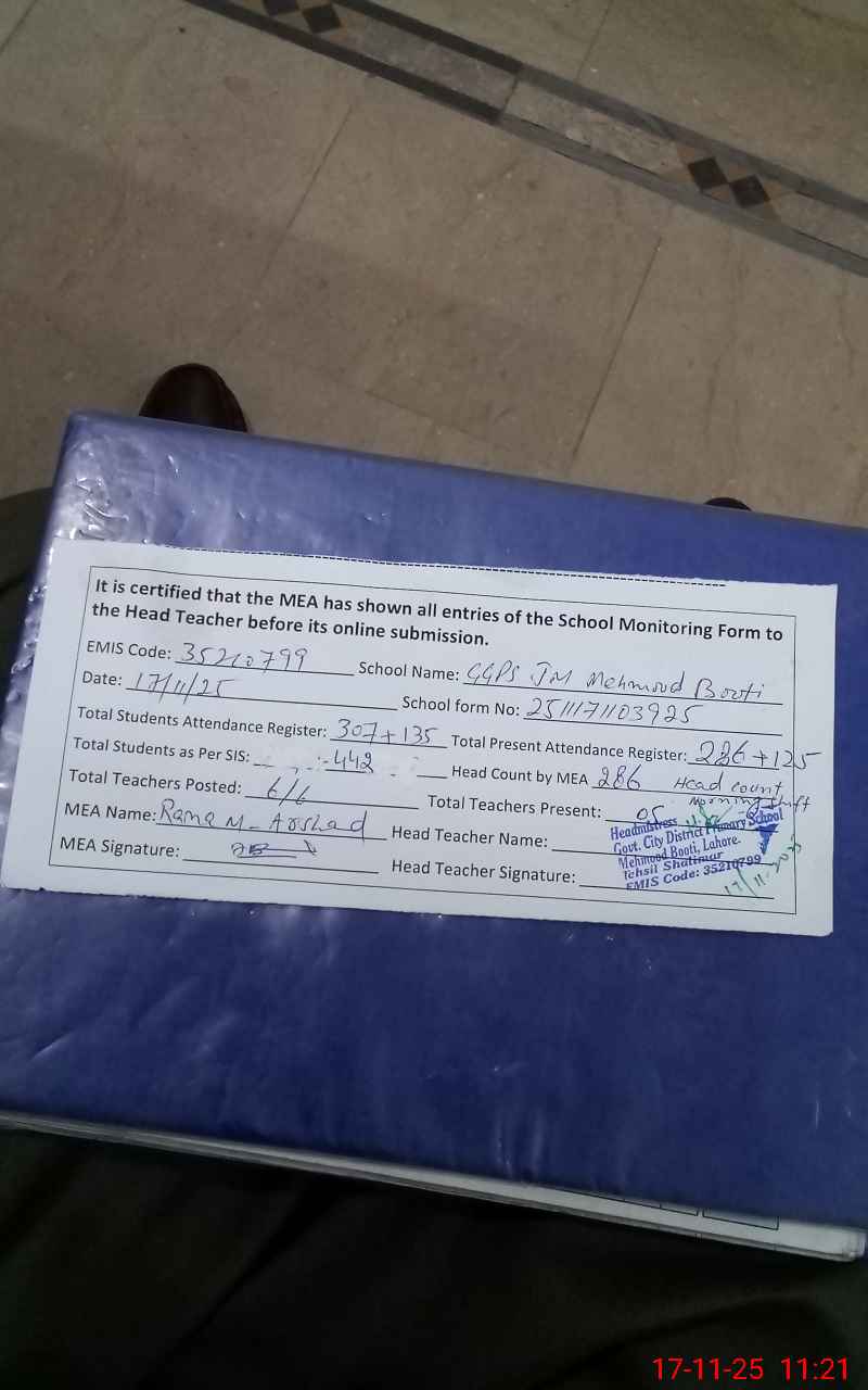 | EMIS Code: 35210799 | Name of School: GGPS JUNIOR MODEL MEHMOOD BOOTI (EX-MCL) | |||