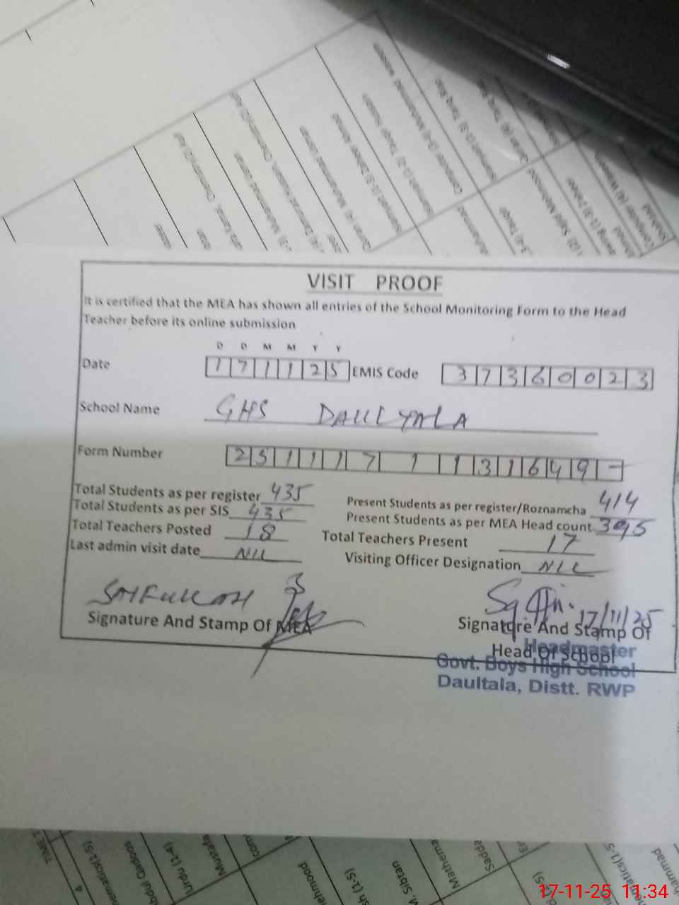 | EMIS Code: 37360023 | Name of School: GHS DAULTALA | |||
