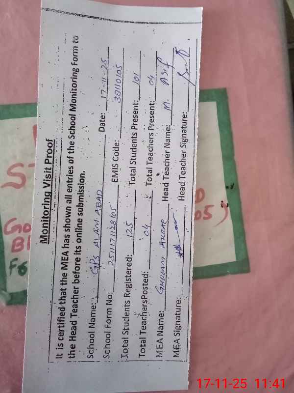 | EMIS Code: 38110105 | Name of School: GPS ALAM ABAD BHAKKAR | |||