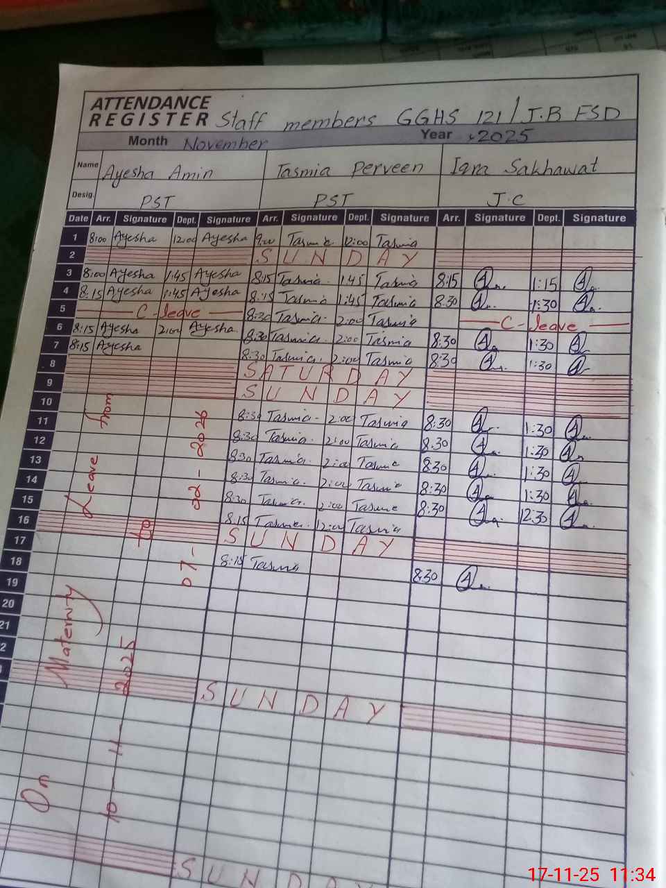| 61**** | RA**** AH**** SA**** KH**** | NQ | 0 | 31 | 0 | 0 | 0 | 0 | 0 | 0 | 0 | Exam Duty | |