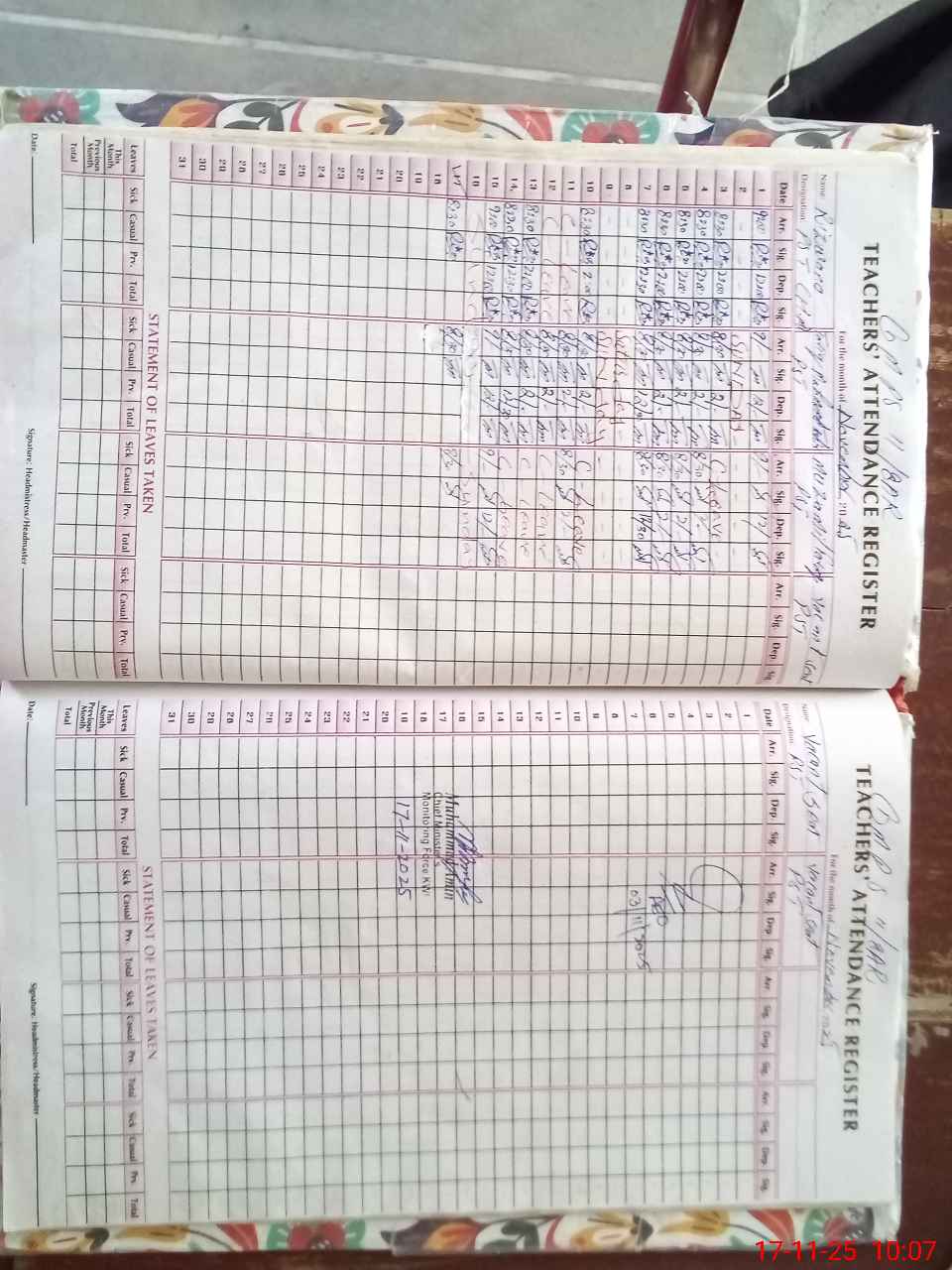 | Monitoring Date: 17-11-2025 | Start Time: 17-11-2025 09:23 AM | End Time: 17-11-2025 10:46 AM | Name of MEA: Mu**** Am**** | |