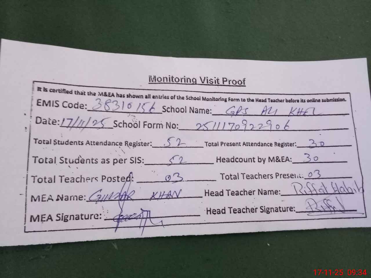 | EMIS Code: 38310156 | Name of School: GPS ALI KHEL WANDHA SHAHBAZ KHEL | |||
