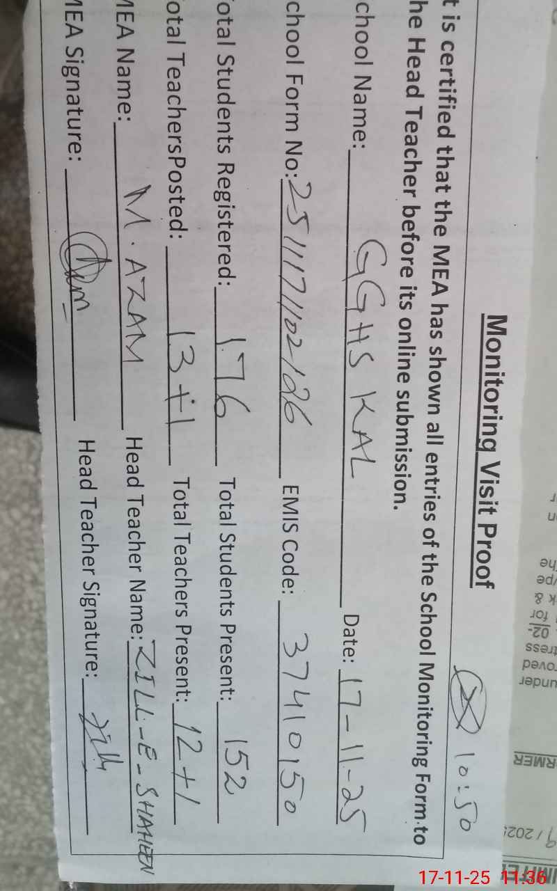 | EMIS Code: 37410150 | Name of School: GGHS KAL | |||