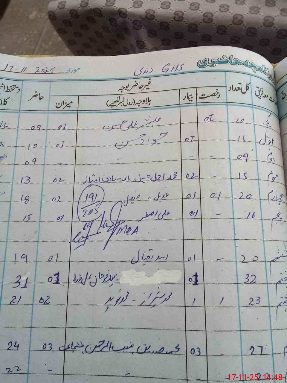 | CNIC | Full Name | Designation | R/C | Absence during last cal. month |