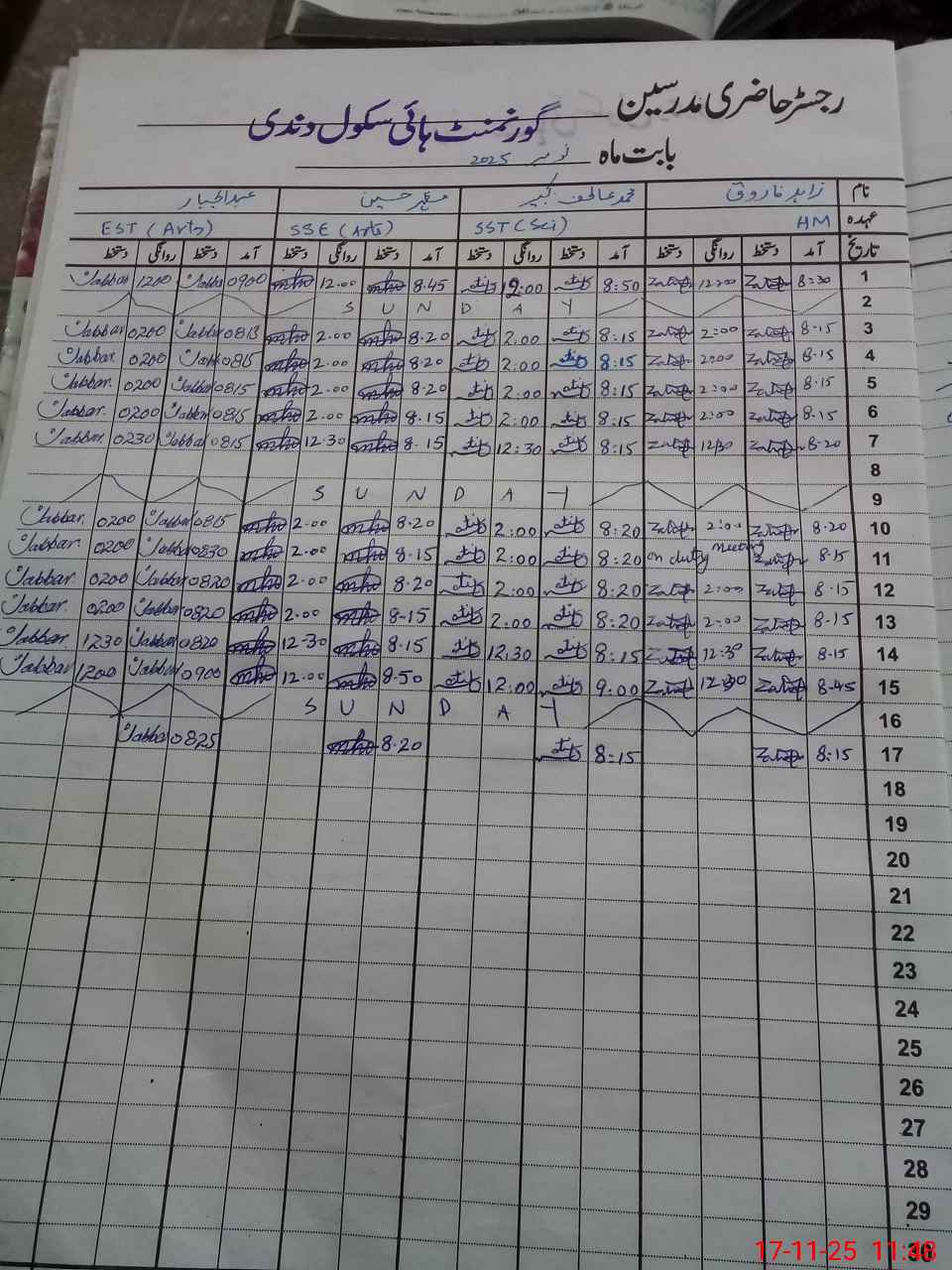 | CNIC | Full Name | Designation | R/C | Absence During Last Calender Month |