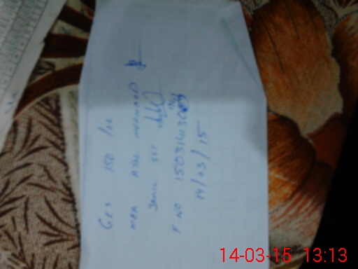 | Monitoring Date: 14-03-2015 | Start Time: 14-03-2015 12:57 PM | End Time: 14-03-2015 01:14 PM | Name of MEA: Ay**** Me**** BN**** 13 | |