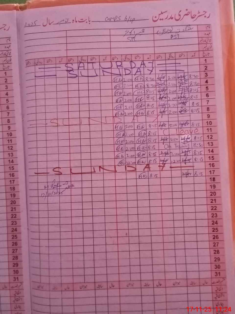 | CNIC | Full Name | Designation | R/C | Absence During Last Calender Month |