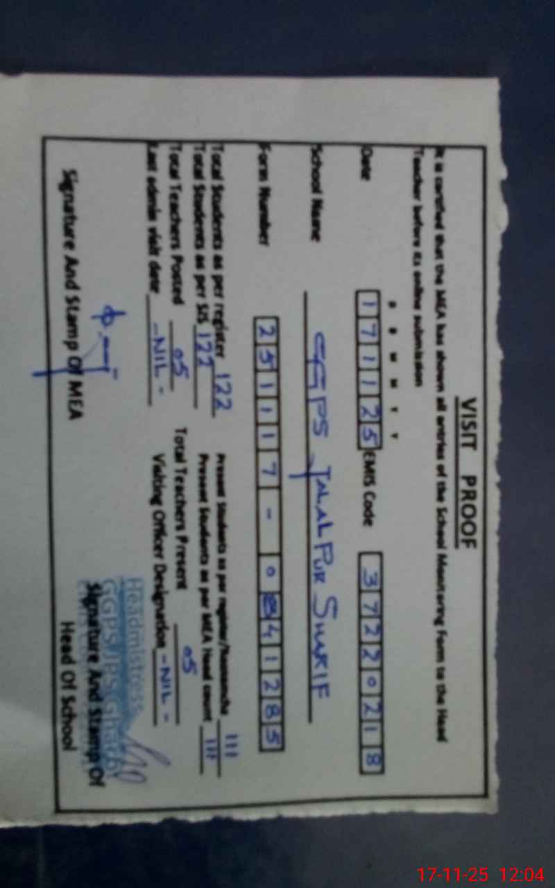| Attendance Register | Head Teacher | MEA with School | Visit Proof |