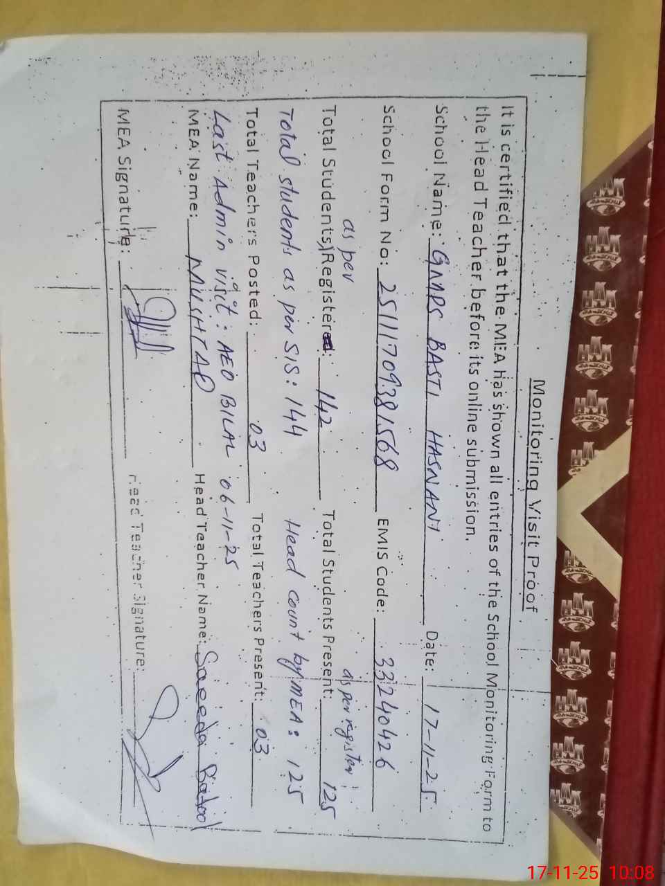 | EMIS Code: 33240426 | Name of School: GMPS BASTI HASNANI | |||