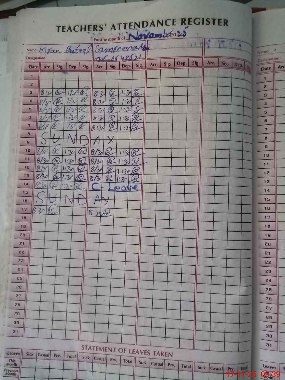 | Remarks (Use Separate Page if Required): Afternoon shift attendance was not marked from 11 November and onward | |||||