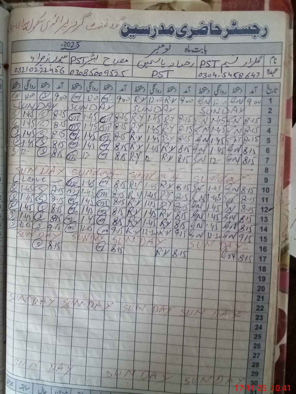 | Name: GU**** NA**** Designation: (School Headmaster's/Headmistress's) PST Phone/Cell Number: 03**** |