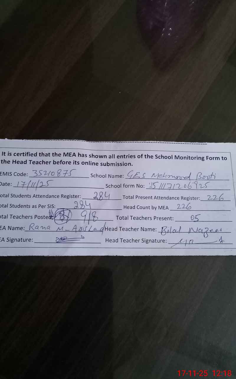 | EMIS Code: 35210875 | Name of School: GES MEHMOOD BOOTI (EX-MCL) | |||