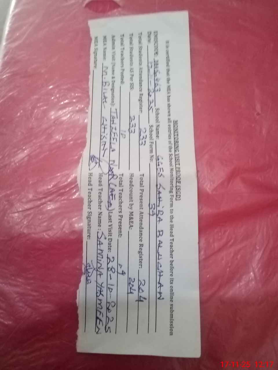 | Certified that this School was Inspected by the Undersigned MEA/DMO Today and the Information Stated Above is as Per Record. | |||||