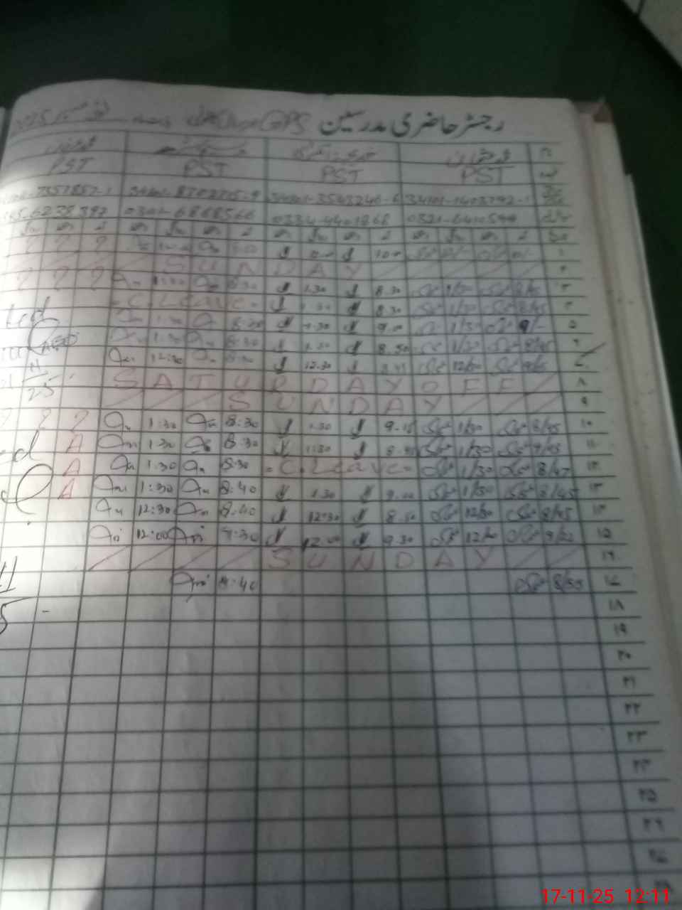| Name: MU**** US**** Designation: (School Headmaster's/Headmistress's) PST Phone/Cell Number: 03**** |