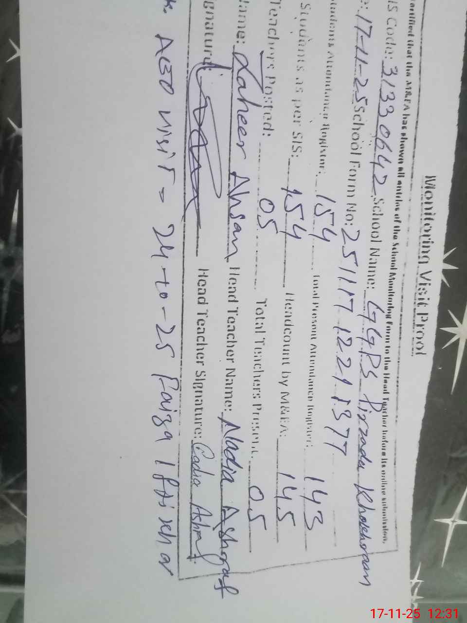 | EMIS Code: 31330642 | Name of School: GGPS BASTI PERZADA KHOKHRAN | |||