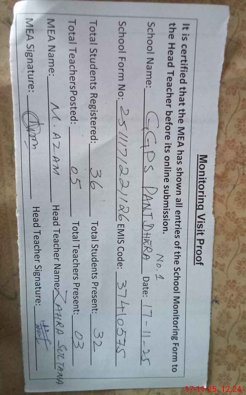 | EMIS Code: 37410575 | Name of School: GGPS PANJ DHERA NO.1 | |||