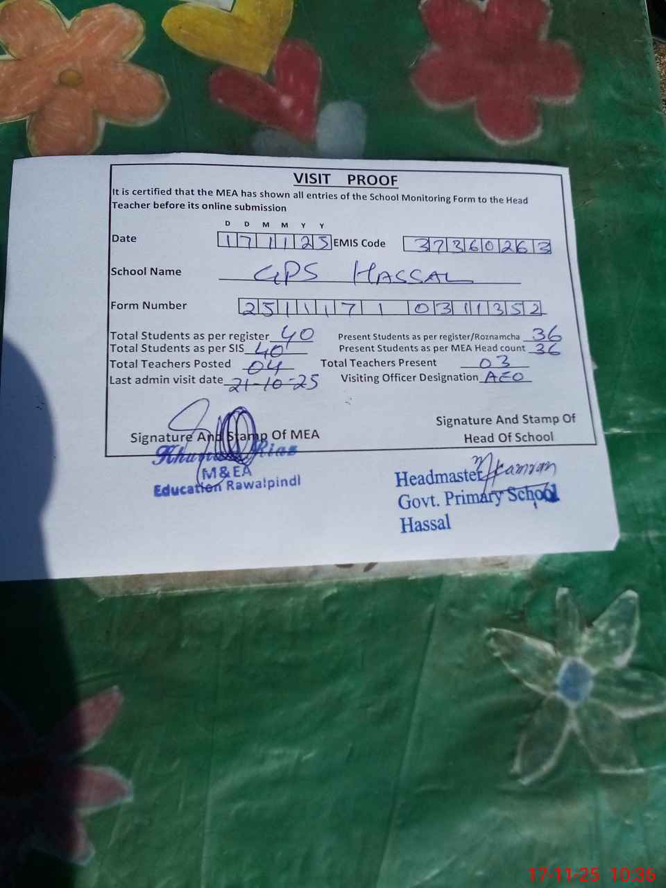 | EMIS Code: 37360263 | Name of School: GPS HASSAL | |||