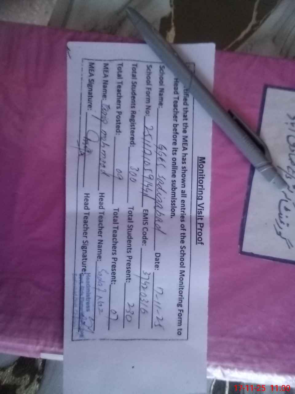 | EMIS Code: 37420316 | Name of School: GGES SADIQABAD | |||