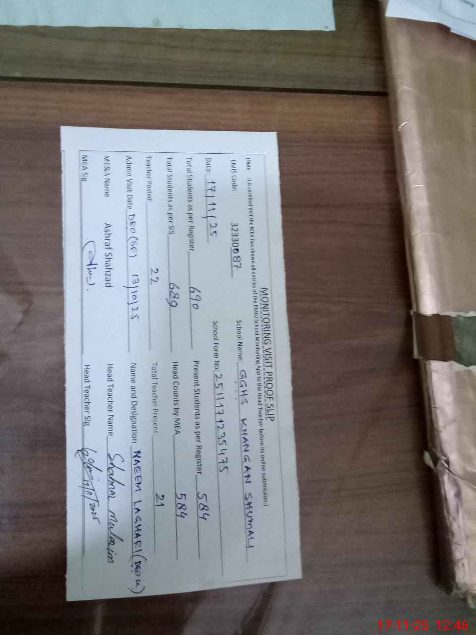 | EMIS Code: 32330087 | Name of School: GGHS KHANGAN SHUMALI | |||