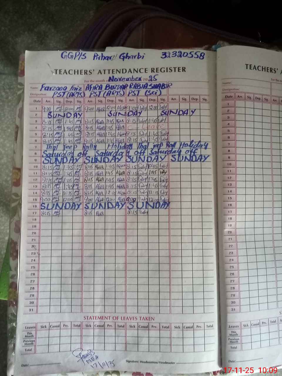 | Name: FA**** FA**** Designation: (School Headmaster's/Headmistress's) PST Phone/Cell Number: 03**** |
