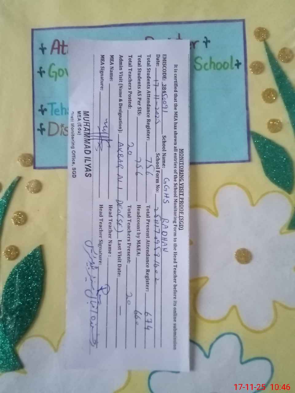 | EMIS Code: 38450091 | Name of School: GGHS RADHAN | |||