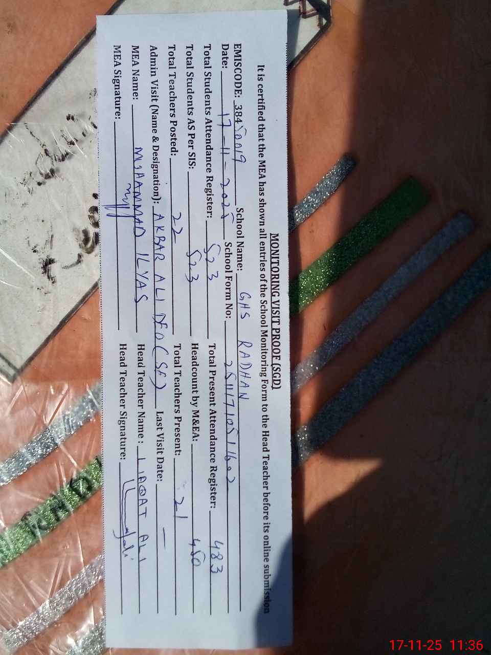 | EMIS Code: 38450019 | Name of School: GHS RADHAN | |||