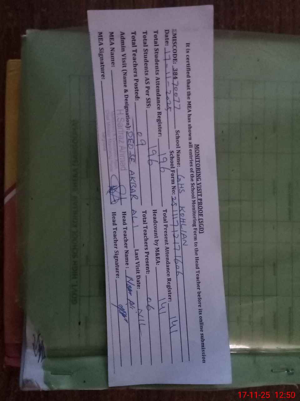 | EMIS Code: 38470077 | Name of School: GHS KOHLIAN | |||