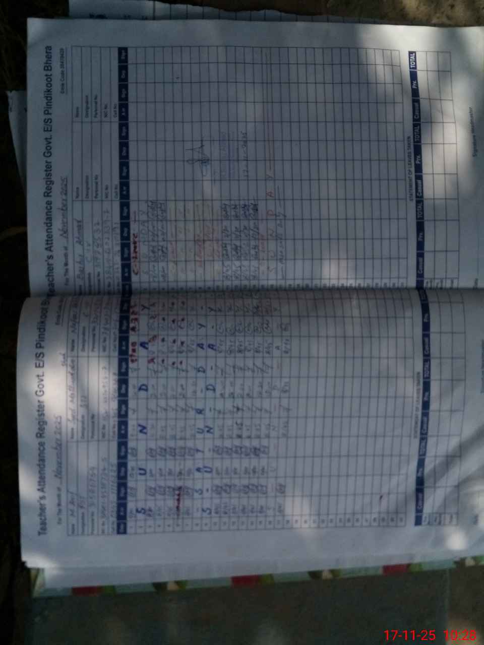 | CNIC | Full Name | Designation | R/C | Absence During Last Calender Month |