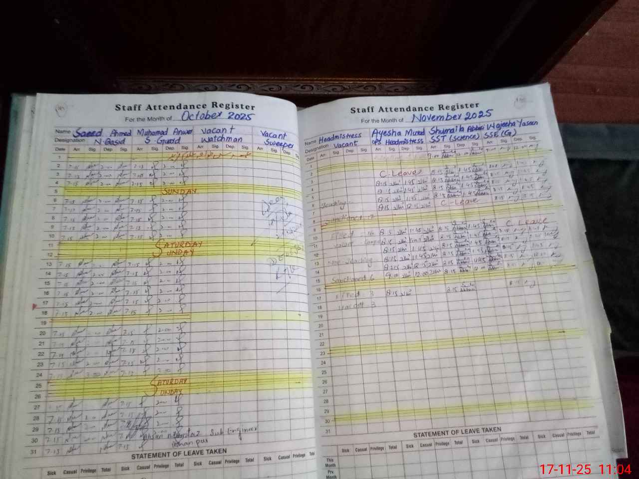| 31**** | Na**** Sh**** | Regular | 0 | 0 | 31 | 0 | 0 | 0 | 0 | 0 | 0 | Absent (Un-Authorized) | |