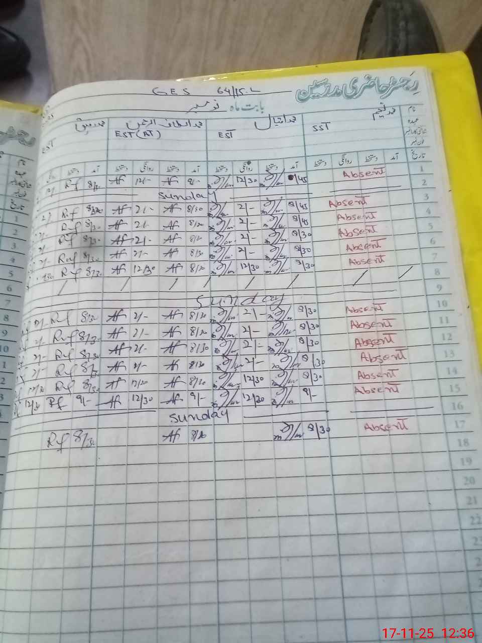 | Remarks (Use Separate Page if Required): Muhammad Naeem sse cnic number 3610449779965 Is absent since 16 October 2024 to till date | |||||