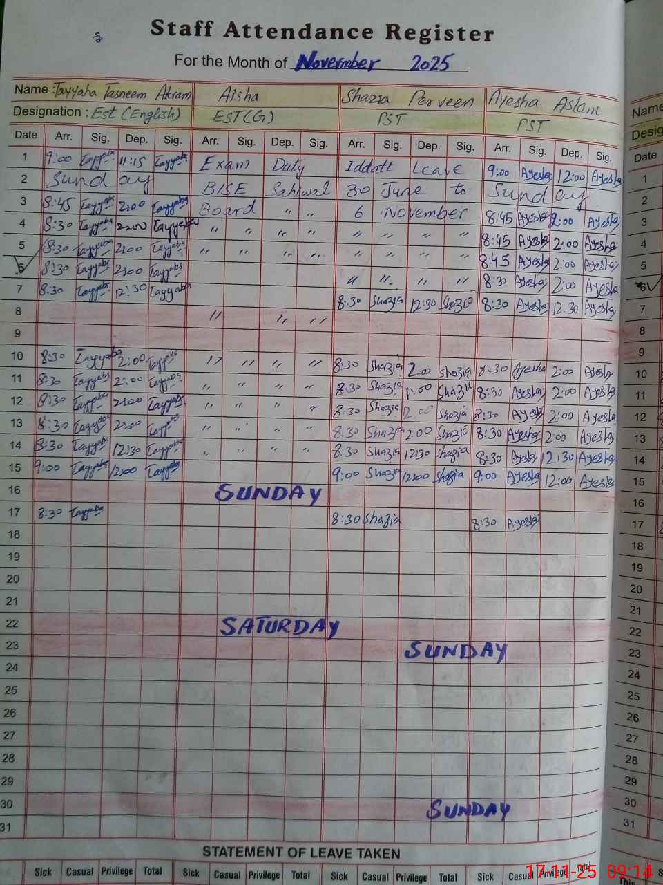 | 35**** | Ai**** | ESE Urdu | Regular | 0 | 0 | 0 | 0 | 0 | 0 | 0 | 0 | 0 | Exam Duty |